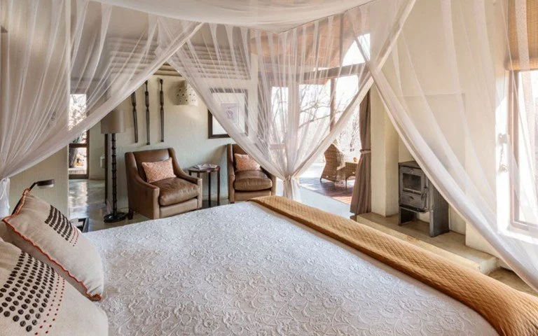 Spacious in design, each of the 8 Luxury Suites include a closed system fireplace, climate control air conditioner, mini bar fridge, tea & coffee making facilities and full en-suite bathroom and outside shower. Your private deck allows uninterrupted views of the Madikwe Game Reserve. Each suite has been carefully positioned to ensure absolute privacy.