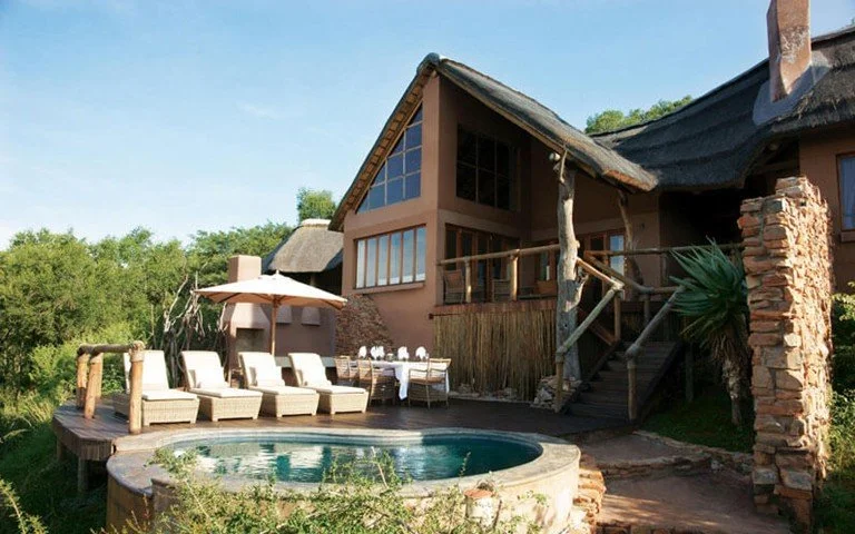 Impodimo Game Lodge is set along a rocky ridge commanding stunning vistas of the Madikwe Game Reserve. It is also located at the source of a natural spring, which provides the lodge with elevated views as well as riverine serenity.