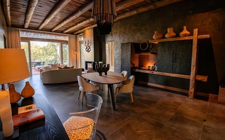 Our superior villas feature wrap-around glass sliding doors that open onto an outside deck area with stunning views of the Klaserie River. Enjoy something refreshing from your minibar while lazing around in your heated pool or relaxing on the patio. After a day in the bush, you can take a spectacular shower under the stars in your outdoor shower or, if the weather’s a bit chillier, cuddle up in your opulent villa while sipping champagne or any of our selection of fine wines available to you. Aircon in the suites ensures you’ll always be comfortable and a Nespresso coffee machine means you can wake up to the smell of your favourite roast, warm and aromatic. For peace of mind, we’ve provided a lock-up safe for your valuables, and the suites are equipped with tech creature comforts – wi-fi and international adapters for your convenience.